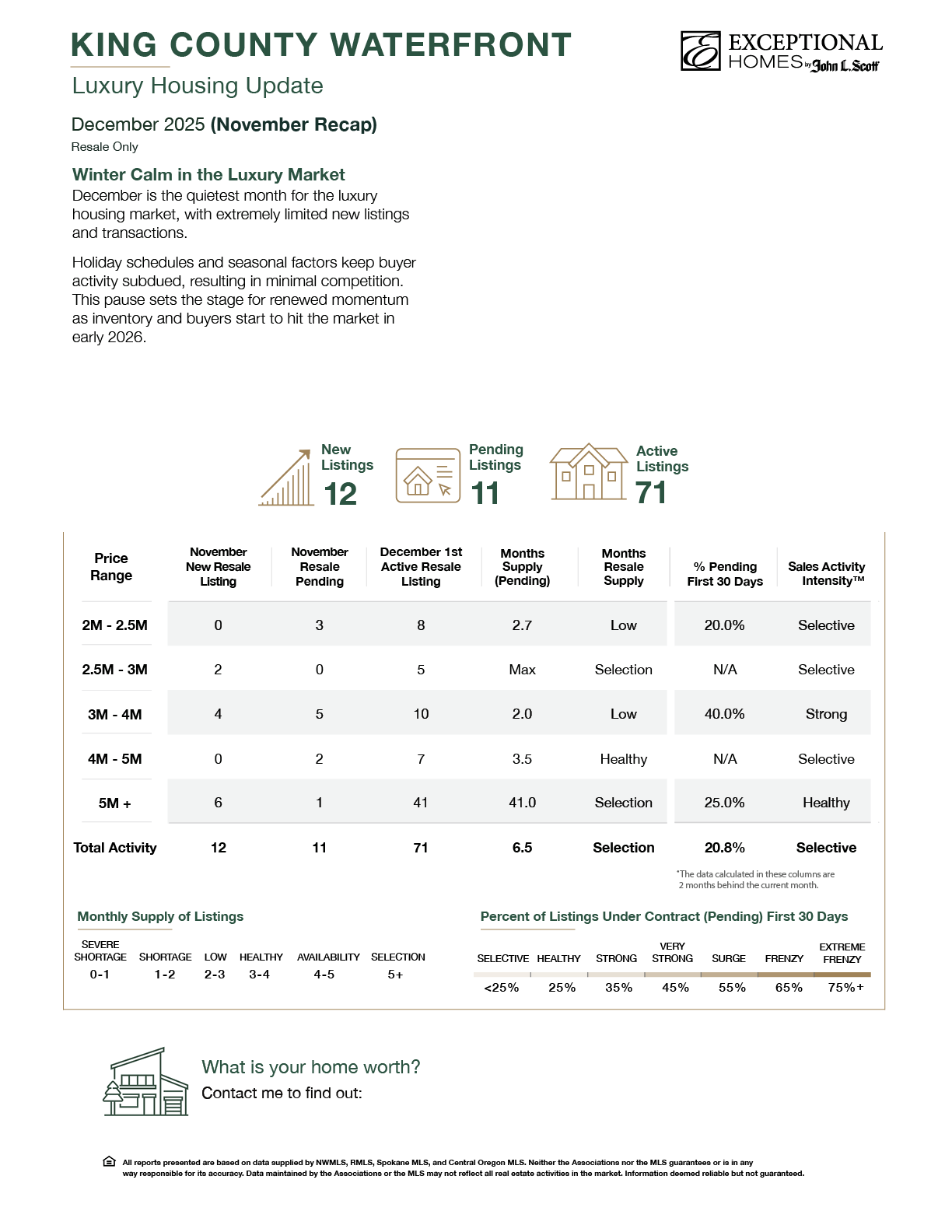 Holiday schedules and seasonal factors keep buyer activity subdued, resulting in minimal competition. This pause sets the stage for renewed momentum as inventory and buyers start to hit the market in early 2026.
